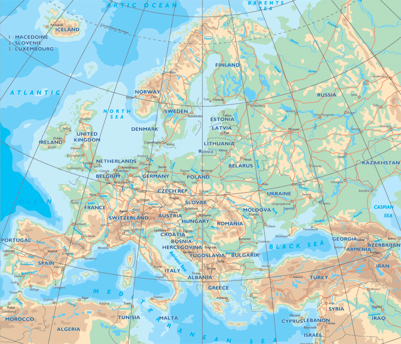 Klima: Umjereno kontinentalna (srednja i istična Evropa), polarna (sjever Skandinavije), sredozemno-tropska (oko sredozemlja), atlanska (zapadna Evropa), planinska (veće planine)