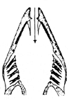 • Samo je stražnji dio stopljen, prednji dio u obliku dva tanka ogranka, glaveni