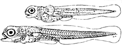 reapsorpcije žumanjčane vrećice, kod ličinke se javljaju trbušne peraje i