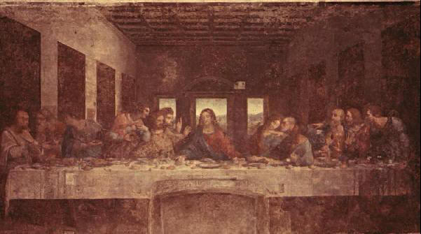 nedovrše![]() Leonardove stilističke inovacije još su uočljivije u Posljednjoj večeri, u kojoj je rekreirao tradicionalnu temu na potpuno nov način. Umjesto prikaza dvanaestorice apostola kao individualnih figura, grupirao ih je po troje u dinamičnu kompoziciju oko lika Isusa Krista, koji je izoliran u sredini slike. Posjednut ispred blijedog, udaljenog krajolika gledanog kroz pravokutni otvor na zidu, Hrist – koji naslućuje da će ga jedan od prisutnih izdati – predstavlja mirno i spokojno središte, dok ostali likovi reagiraju živahnim gestama. U veličanstvenosti scene i ozbiljnosti figura, Leonardo nam ponovno predstavlja st il kojeg je utvrdio više od jedne generacije prije Mosaccia. Leonardova originalnost i inventivnost bila je, a i danas je primjer fantastične kreativnosti i upornosti. |
