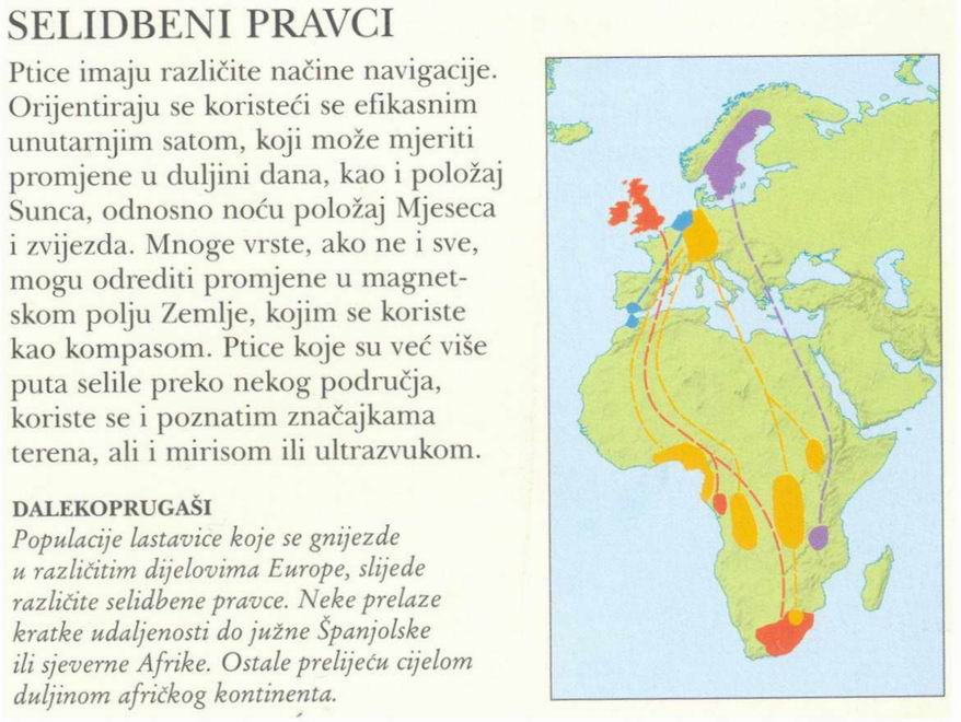 Mnoge ptice poduzimaju sezonske selidbe.Mnoge selice gnezde se u proleće i leto u višim geografskim širinama, iskorištavajući prednost dužih dana, ali zimi odlaze u niže geografske širine.Mnoge vrste pokazuju složene oblike kretanja gde samo neke populacije- ili u nekim slučajevima samo ženke- napuštaju svoja gnezdilišta, dok ostale ostaju.Ptice koje se tako ponašaju smatraju se delimičnp selicama.Sve ptice se ne sele delom i zato što to iziskuje trošenje velike količine energije.Vrste koje se uopšte ne sele (uključujući mnoge tropske vrste) zovu se stanaricama.Nagon za selidbom potaknut je kombinacijom unutrašnjeg fiziološkog ciklusa (hormonska aktivnost) i promenama u dužini dana.Kako se približava razdoblje selidbe, ptice nakupljaju rezerve masnog tkiva, potrebne na putovanju i pokazuju znakove uznemirenosti.Mnoge ptice imaju impresivnu sposobnost navigacije, prelećući hiljade kilometara da bi stigle s velikom preciznošću na svoje odredište.