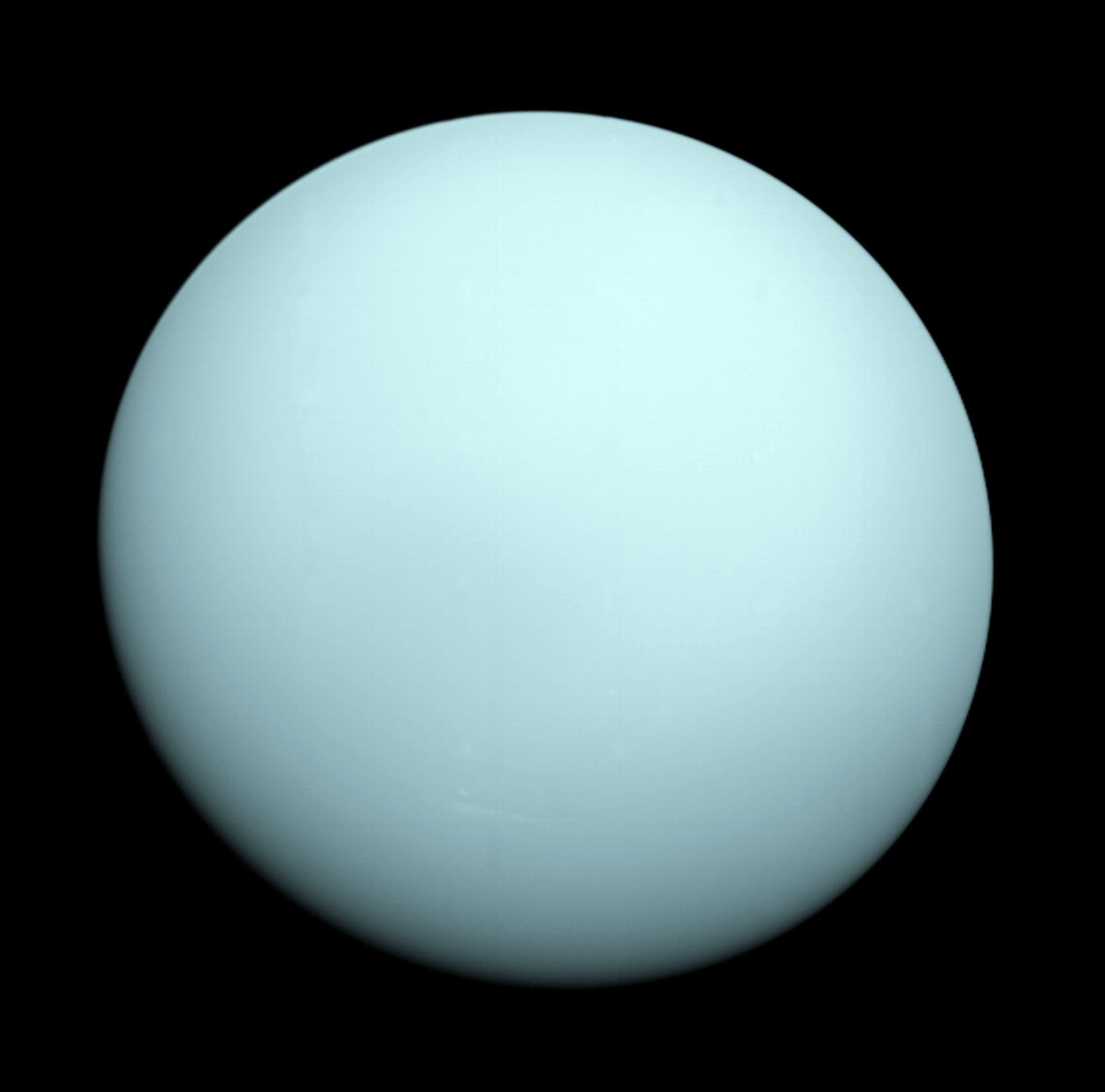 Уран је добио назив према грчком богу неба, претходнику богова са Олимпа и некадашњем врховном богу. 13.марта 1781.год. William Herschel открио је Уран, за кога се у почетку мислило да је обична звијезда. Девет Уранових прстенова откривено је 1977.год. Само је једна летјелица посјетила Уран, 24. јануара 1986.год. Том приликом Voyager 2 открио је још два Уранова прстена и десет нових сателита. Уран (плава планета) је трећа планета по величини и спада у групу планета дивова (припада вањском дијелу Сунчевог система). Он је седма планета по удаљености од Сунца, а обилази га на растојању од 2 866 000 000km. Уранова година (обилазак око Сунца) траје 83.83 год. Око своје осе се окрене за 17 сати и 14 минута. Његова маса износи 8.6625x1025kg, што је 14.6 масе Земље. Ротација Урана нагнута је 98˚ у односу на путању око Сунца, те се због тога за њега каже да је окренут „на бок“. За вријеме прелјетања летјелице Voyager 2 изнад Урана, његов јужни пол је био окренут Сунцу. Због тога би поларна подручја требала бити топлија од екваторских, али то није случај (из до сада непознатих разлога). Иначе, Уран добија 51% сунчеве свјетлости. Може се видјети и голим оком, али га је тешко разликовати од околних звијезда. Поред Јупитера, Сатурна у Нептуна и Уран спада у гасовите дивове, међутим он нема властити извор енергије у унутрашњости. За њега је карактеристична диференцијална ротација (која је ипак бржа код полова), односно трајање дана зависи од удаљености од екватора. Што се тиче структуре Урана, карактеристично је да се на камено језгро наставља омотач који полако прелази у атмосферу. Омотач је грађен од леда, метана и амонијака. Извор магнетног поља Урана је непознат. Његов интензитет је сличан Земљином иако варира од мјеста до мјеста. Ураново магнетно поље нагнуто је 55˚ према оси ротације и настаје близу површине. Уранова атмосфера се сатоји од водоника 83%, хелијума 15%, метана 2%, док се вода и амонијак налазе у траговима. Метан упија свјетлост комплементарних боја и даје Урану карактеристичну боју. Уранова атмосфера је провидна и безлична до већих дубина гдје се могу наћи облаци смрзнутог метана. Сунце обасјава подручје Урана ближе екватору, тако да измјена дана и ноћи има утицај на температуру неких дијелова планете. Чак се може рећи да на Урану долази до измјене годишњих доба. Уран има 11 прстенова: 1986U2R, 6, 5 ,4, Alfa, Beta, Eta, Gama, Delta, Lambda и Epsilon. Они су елиптични и нису цјеловити. Веома су уски осим прстена 1986U2R, који је широк 2500km. Најсвјетлји прстен је Epsilon, који је у исто вријеме и најудаљенији Уранов прстен. |