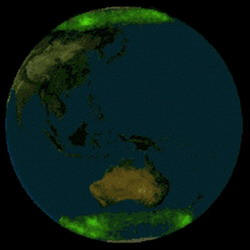 Polarne svetlosti nad južnim i severnim polom mogu biti kao preslikane u odnosu jedna na drugu. Vekovima se sumnjalo u to, sve dok nismo dobili fotografije sa orbitalne NASA svemirske letilice POLAR. Sa svojih 11 instrumenata za proučavanje Zemljine magnetosfere, ova letilica je svojom CCD kamerom svakih 37 sekundi slikala po jedan frejm u ultraljubičastom delu spektra. Na slici desno vidi se satelitski snimak polarnih svetlosti Aurora borealis (Severni pol) i Aurora australis (Južni pol). Oblak elektrona i jonske plazme koji je krenuo sa Sunca par nedelja ranije uzrok je ovih pojava, dok je eksplozija na Suncu tri dana pre toga oslobodila sve te energetske čestice.