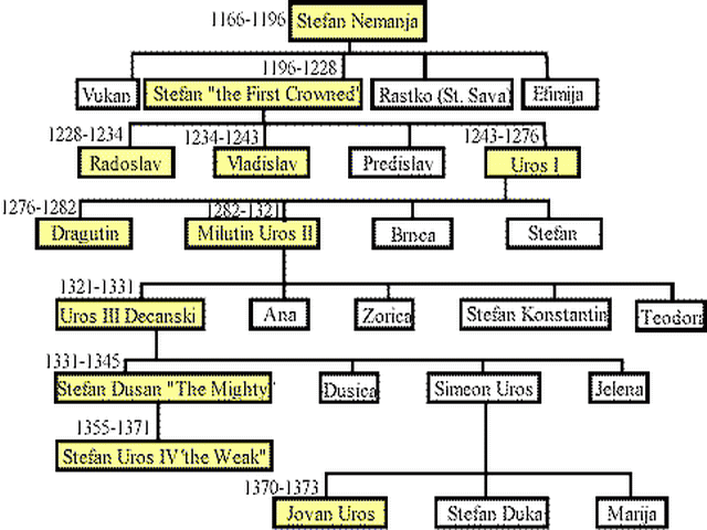 | Кад је византиски цар Исак 1194. год. покушао да сузбије бугарску експанзивност и у свом ратном походу рђаво прошао, јави се против њега моћна опозиција, којој је био један од вођа његов брат Алексије, таст Стевана Немањића. Можда то, да уступи место Алексијеву зету; а можда и неповерење Византије према Немањи као старом савезнику Бугара; а можда и физичка клонулост, иако је она најмање вероватна – би узрок да се Немања, на Благовести 1195. год., одрекао престола. За његова наследника не дође старији му син Вукан, него средњи Стеван, византиски зет, што много говори у прилог мишљењу да је Немањина абдикација дошла из политичке потребе. Вукан доби на управу Зету с Требињем, Хвасно и очинску Топлицу. Трећи, најмлађи Немањин син, Растко, његов мезимац, беше негде у јесен 1191. или 1192. год., одушевљен причањима о Светој Гори, отишао тамо у руски манастир и примио монашки чин и ново име Сава. |