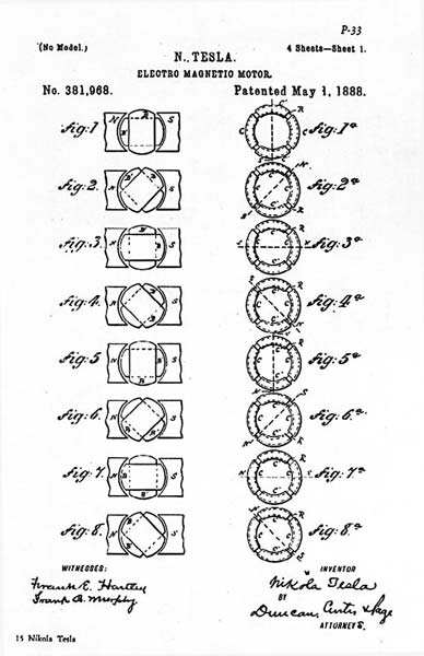 obrtnim magnetnim poljem (za koje mu je odobren patent 1888. godine).