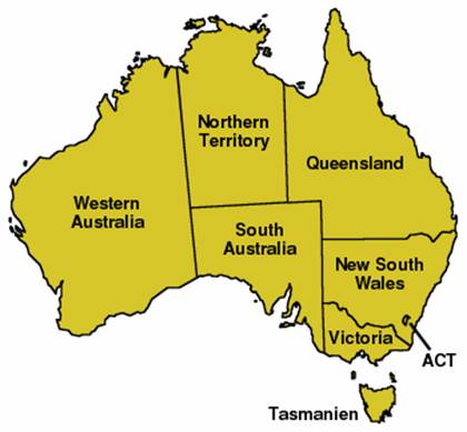 Australija se sastoji od šest država i dvije teritorije na matičnom kopnu, i nekoliko manjih prekomorskih teritorija.