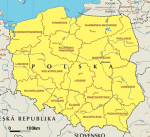 Ø Velikopoljsko (Wielkopolskie) Ø Kujavsko-pomeransko (Kujawsko-Pomorskie) Ø Malopoljsko (Małopolskie) Ø Lodzko (Łódzkie) Ø Donjošlesko (Dolnośląskie) Ø Lublinsko (Lubelskie) Ø Lubusko (Lubuskie) Ø Mazovjecko (Mazowieckie) Ø Opolsko (Opolskie) Ø Potkarpatsko (Podkarpackie) Ø Podlasko (Podlaskie) Ø Pomeransko (Pomorskie) Ø Svetokriško (Świętokrzyskie) Ø Šlesko (Śląskie) Ø Varminsko-mazursko (Warmińsko-Mazurskie) Ø Zapadnopomeransko (Zachodniopomorskie)