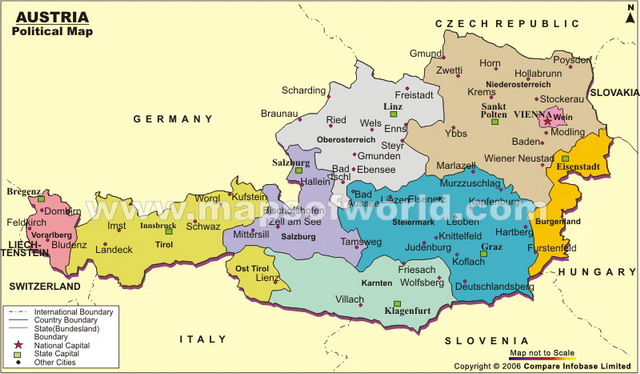 Najveći gradovi: Beč (glavni grad), Salzburg, Innsbruck, Graz i Linz.