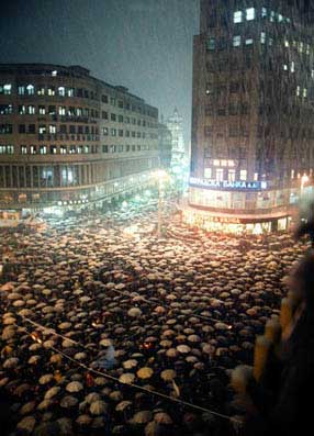 Nakon izbora 24. septembra 2000. godine, Beograd je postao poprište masovnih demonstracija sa preko pola miliona učesnika (800.000 po policijskim procenama, a po drugim izvorima i do 1.000.000), koje su dovele do pada Miloševića sa vlasti.