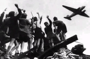 Nakon drugog svjetskog rata tj. nakon kapitulacije Njemačke 6 dana prije nego sto je uopšte 2. svjetski rat završen u Berlinu je bilo uništeno 600 000 stanova i od 4,3miliona ljudi u Berlinu je živjelo 2,8 miliona. Kažu da je 70 posto grada bilo uništeno zahvaljujući savezničkim bombardovanjem te ta su ga nazvali Vremenskom nulom što je značilo novi početak za grad. Saveznici su podjelili Berlin na 4 sektora, na američki, sovjetski, francuski i engleski. Čime počinje hladni rat u Berlinu izmedju saveznika i sovjeta. 26. juna otpočela je Staljinova blokada te su saveznici bili primorani da snadbjevaju svoj dio Berlina vazdušnim mostom (Die Luftbruecke), svakih par sekundi su polijetali avioni iz Hamburga i Minhena za zapadni Berlin prenoseći osnovne zalihe i ugalj. |