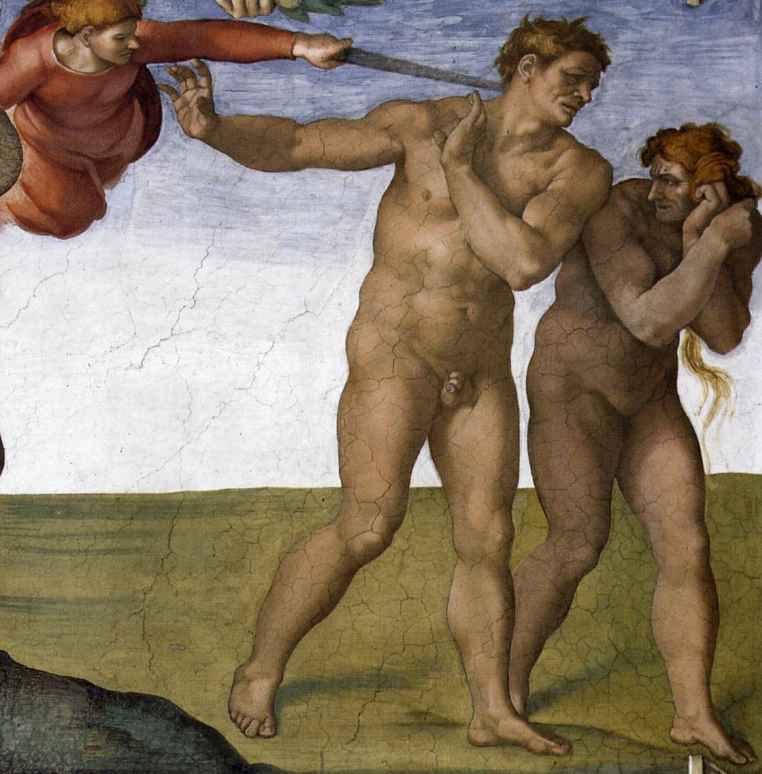 Proterivanje Adama i Eve iz raja, detalj sa tavanice Sikstinske kapele |