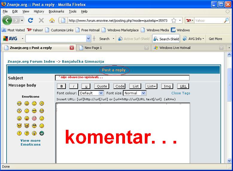 odgovorimo,odnosno komentarisemo -"quote" ili "postReply" sluze za otvaranje prozora za komenarisanje |