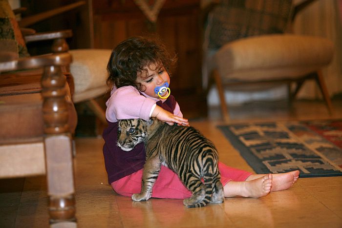 Institut za ugrožene i rijetke životinjske vrste u blizini Miamija svojim posjetiteljima redovno priređuje pravi spektakl. Naime, osoblje ovog američkog instituta bezbrižno se igra s mladim tigrovima u bazenu, budući da mladunčad u vodi razmišlja samo o dobroj zabavi, a ne o lovu. Naravno, igre u vodi neće biti moguće, kad velike mačke dosegnu težinu od nevjerovatnih 230 kg i narastu do 2,5 metara.