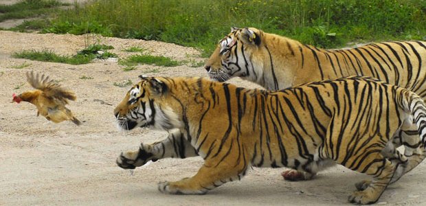 Da zakoni prirode definitivno ne vrijede u zoološkom vrtu dokazali su i tigrići iz Kine, koji su prvo bježali od svog nesuđenog plijena, da bi se kasnije, nakon što su uspjeli svladati strah, sprijateljili s njim.Tigrići u jednom kineskom zoološkom vrtu šokirali su čuvare kada su se sprijateljili s pilićima.Grupa mladih tigrova oduševila se jatom tek izleglih pilića, koji su bili doneseni u njihov kavez kako bi pobudili njihov lovački instinkt.Radnici u zoološkom stavili su piliće mladim tigrovima u kavez kako bi na njima vježbali lov i probudili njihov životinjski instinkt.''Željeli samo probuditi njihovu divlju stranu dok su još mladi'', kaže glasnogovornik zoološkog vrta.No to im nije uspjelo. Tigrići su u početku bježali od pilića, a onda su im se počeli stidljivo približavati.''Nakon nekog vremena počeli su se zajedno igrati. U njihovim očima oni očito nisu neprijatelji, već prijatelji'', dodaje glasnogovornik.