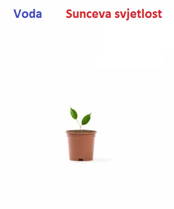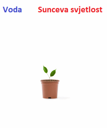 Za rast i razvoj biljke potrebna je Sunceva svjetlost i voda.