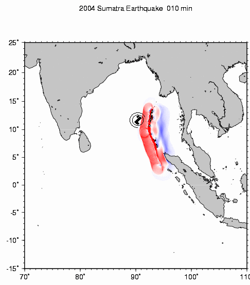 Ova animacija predstavlja epicentar zemljotresa koji se dogodio na Sumatri 2004. godine.