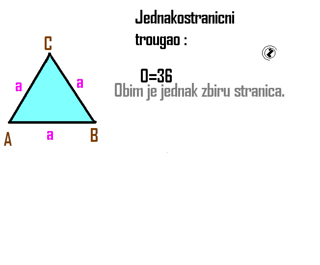 -Izračunati visinu i površinu jednakostraničnog trougla ABC, ako je njegov obim 36.