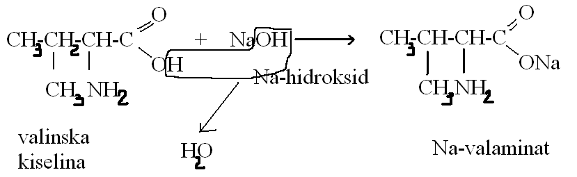 neutralizacija je reakcija koja se odvija izmedju kiselina i baza(u ovom slucaju valinske kiseline i natrijum hidroksida)i kojom nastaju so(natrijum valaminat) i voda. |