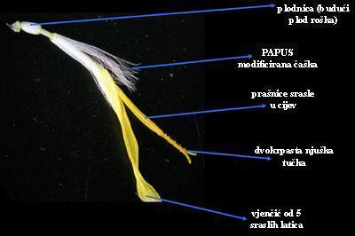 Maslačak je jedna svima poznata biljka koja se udomaćila u vrtovima i parkovima, a često je viđamo kako raste uz rubove prometnica bez gotovo imalo tla. Pojedinačni cvijet sastoji se od plodnice, čaške (papusa), prašnika, tučka i vjeničića (latice) |
