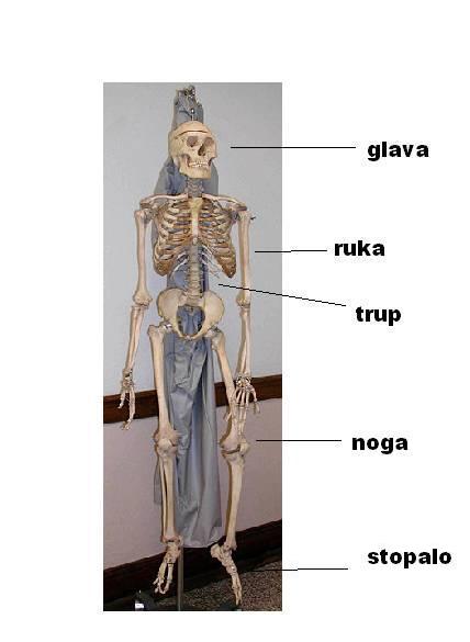 Osnovni djelovi čovječijeg skeleta su: Glava Ruka (ruke) Trup Noga (noge) Stopalo |