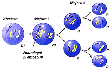 mejoza. Pri tome se jedna diploidna ćelija dva puta deli i nastaju četiri