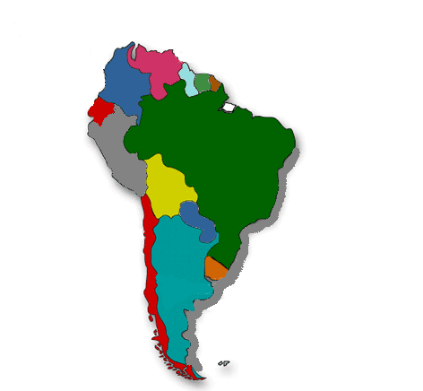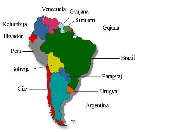 1. Venecuela 2. Gvajana 3. Surinam 4. Gujana 5. Brazil 6. Paragvaj 7. Urugvaj 8. Argentina 9. Čile 10. Bolivija 11. Peru 12. Ekvador 13. Kolumbija