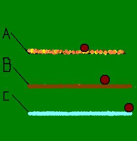 Date su tri strme ravni od istog materijala,sa istim nagibom i tri horizontalne ploče.Ploča A je posuta pijeskom,ploča B je od drveta a ploča C je od stakla.Kada se jedna kuglica pušta sa iste visine niz strme ravni istog nagiba,onda ona prijeđe najduži put na ploči od stakla.Kuglicu na svim pločama zaustavljaju sila trenja i otpor vazduha.Pošto je u sva tri slučaja otpor vazduha isti,slijedi da je trenje između kuglice i stakla najmanje. zakon inercije:Svako tijelo teži da zadrži stanje mirovanja ili ravnomjernog pravolinijskog kretanja kada na njega ne djeluju druga tijela ili kada se uzajamna djelovanja tog tijela i drugih tijela međusobno poništavaju.