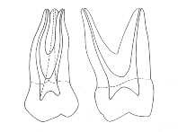 Korijen kutnjaka je znatno masivniji nego kod ostalih zuba. Gornji kutnjaci imaju najčešće tri korijena, jedan unutrašnji, tj. lingvalni i dva spoljašnja, odnosno bukalna. Donji kutnjaci imaju najčešće dva korijena, od koji je jedan mezijalni, a drugi distalni. Korijenovi umnjaka su različite dužine, najčešći sažeti u jedan, ali mogu biti i trokraki kod gornjih odnosno dvokraki kod donjih umnjaka.