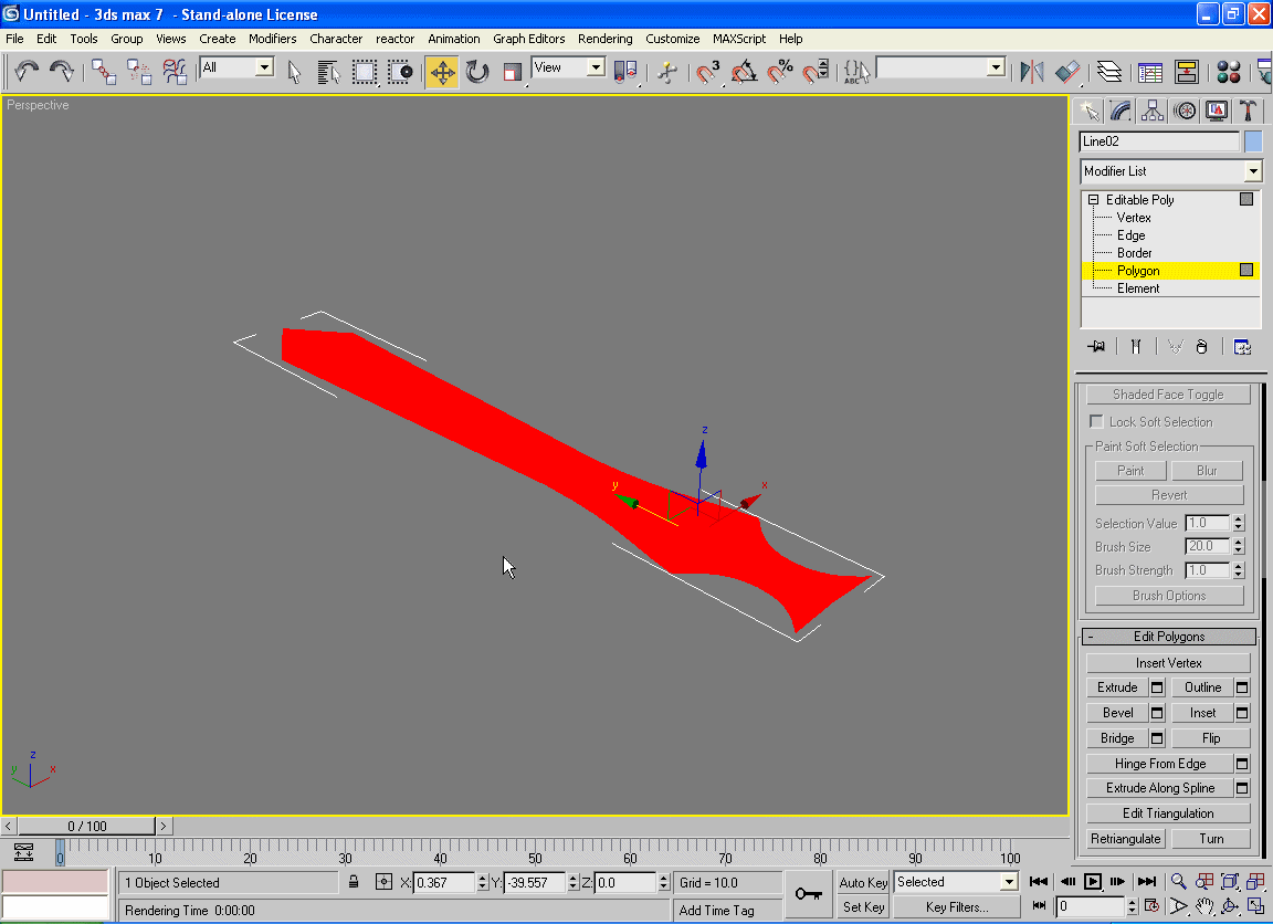 Nakon što je mač postao crven (aktiviran) odaberite polje Bevel.Sada držeći lijevi taster miša lagano vucite prema gore, a zatim prema unutra.