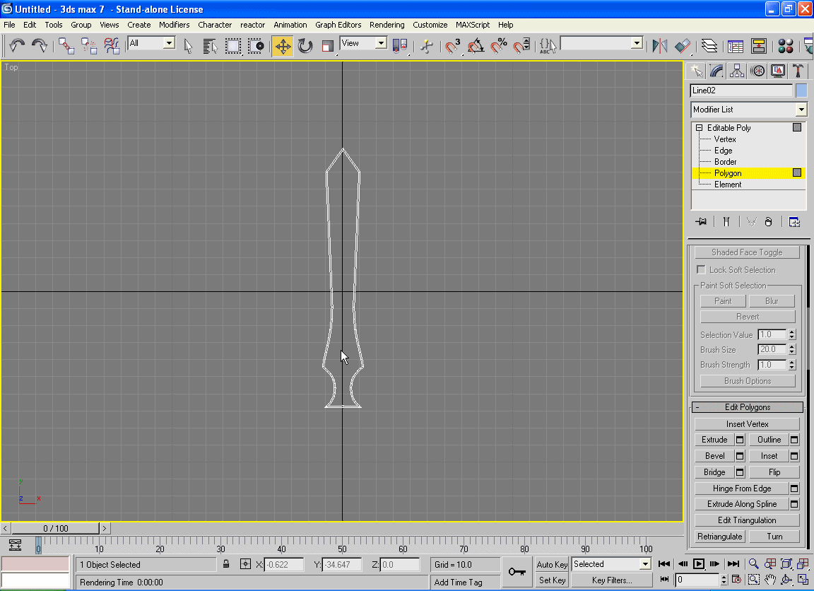 Vratite se u pogled Top i aktivirajte gornju površinu mača.