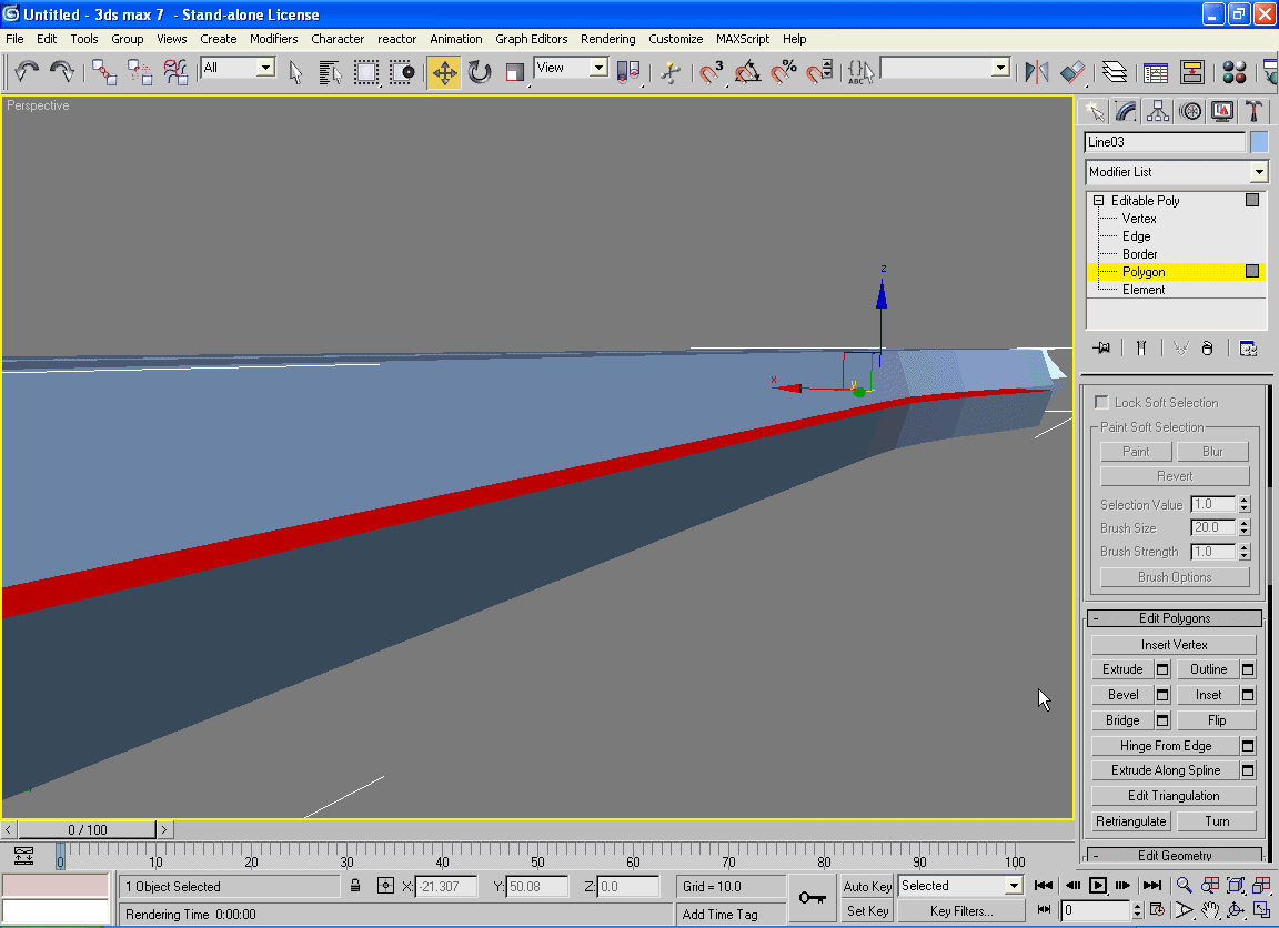 Zumirajte scenu tako da vidite rub mača te ga aktivirajte (Polygon).Izaberite opciju Bridge iz prozora sa desne strane.
