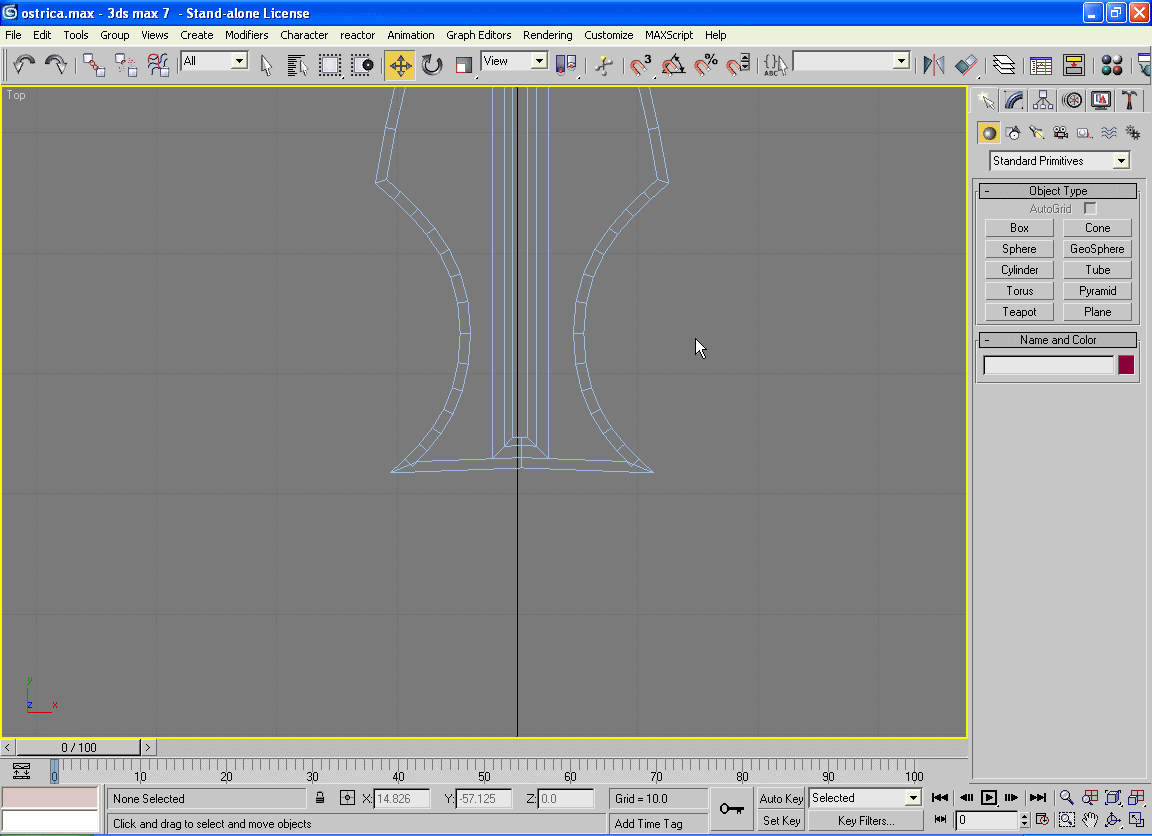 Odaberite pogled Top i u njemu kao što je prikazano kreirajte objekat Cylinder koji se nalazi u polju Object Tipe.