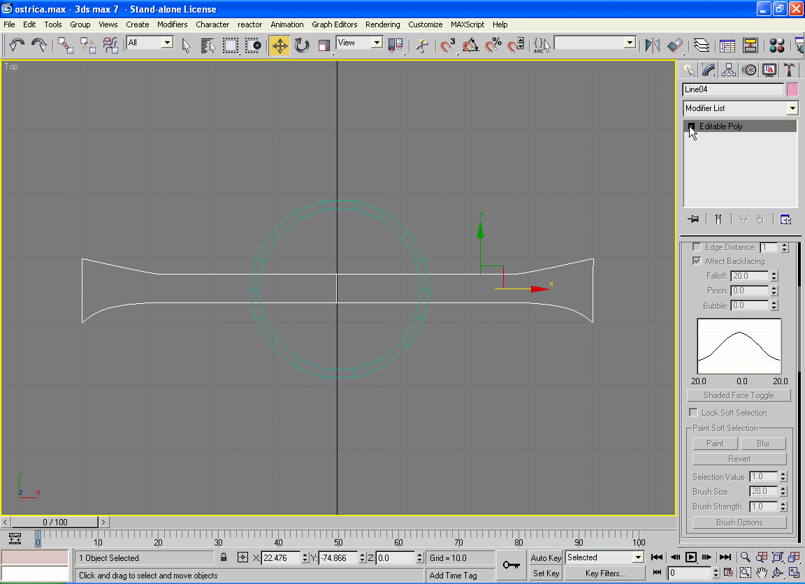 Odaberite iz padajuće liste Editable Poly odeljak Polygon te miš prevucite teko da obuhvatite čitavu dršku.