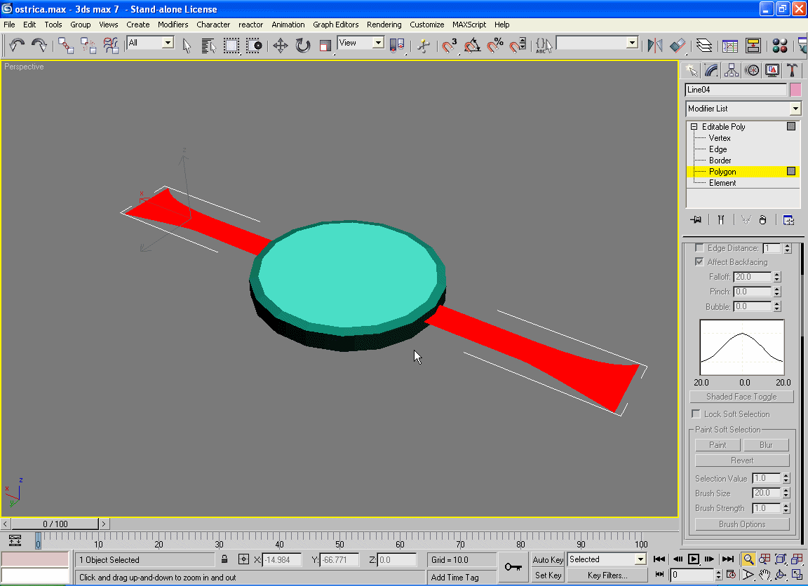 Aktivirajte Perspective te iz przora sa desne strane odaberite Extrude te lagnim povlačenjem prema gore naprevite da drška ima debljinu.