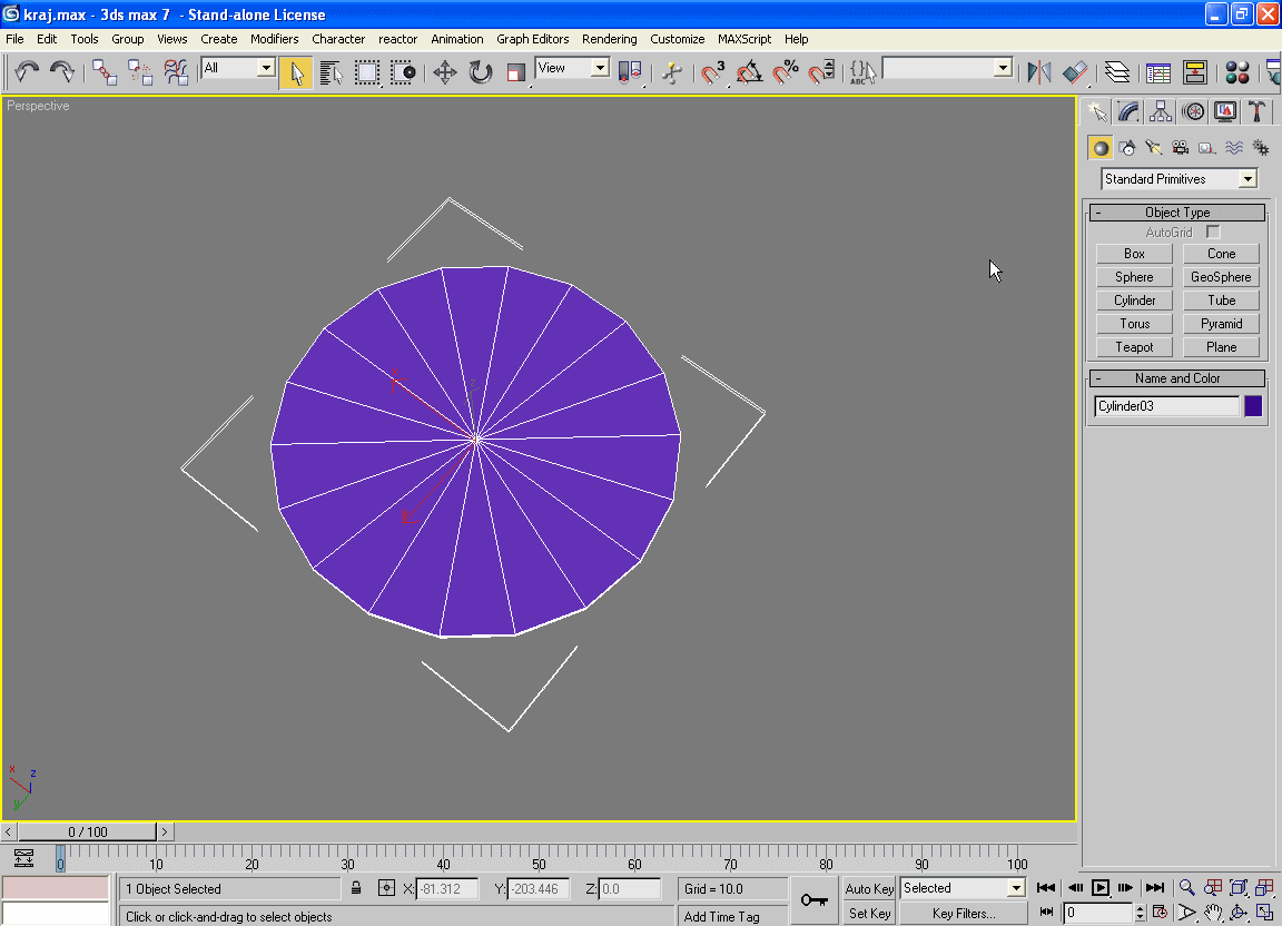 Pod jezičkom Modify,polje parameters upišite u polja sledeće vrijednosti: -Hight = 0.0 -Radius =70.0 -Sides =75