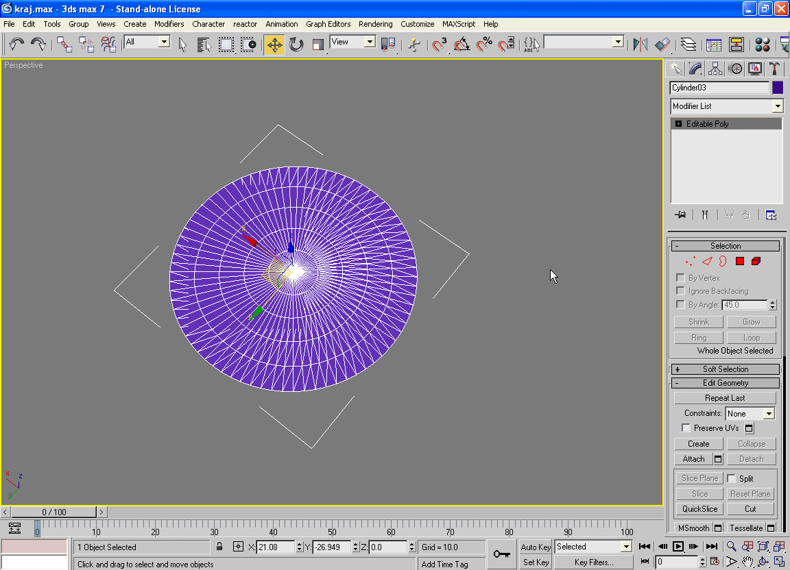 U polju selection izaberite prvu ikonicu (tačkice).Zatim pod jezičkom Soft Selection čekirajte polje Use Soft Selection te nakon toga postavite vrijednost polja Fallof =44.