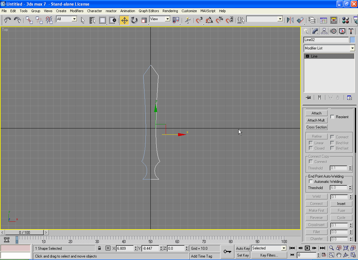 Dok je aktivirana desna strana odaberite opciju Attach iz polja Geometry i kliknite na lijevu stranu mača.Ovim će Te dobiti jedinstven objekat.