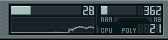 | CPU monitor prikazuje koliko CPU memorije uzima puštanje trenutnog projekta (grafički i u pocentima), poliphony (koliko se zvukova mješa). |