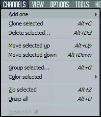 Dodavanje kanala u sekvencer ; Kloniranje i brisanje već dodanog kanala; Pomjeranje kanala po sekvenceru; Formiranje grupe kanala i njihovo bojenje; Smanjivanje i povećavanje veličine kanala u sekvenceru; Restretch all se koristi samo kada se koristi tempo automatizacija da bi se manuelno podesio tempo;