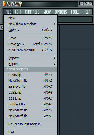 U file meniju s enalaze opcije za: Novi projekat; Novi projekat sa napravljenim templejtom (već učitanim početnim zvukovima i limiterom na mikseti); Otvaranje starog projekta ; Sejvovanje trenutnog projekta ; Import MIDI fajla ili beat-a ; Eksport projekta u vidu .zip , .mp3 , .wawe , .ogg ; Nedavno otvoreni projekti ; Otvaranje poslednjeg projekta ; Izlazak iz programa;