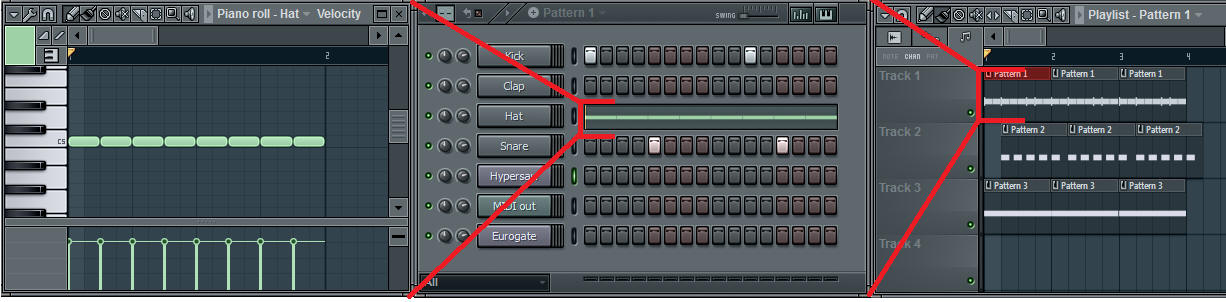 | Piano Roll | Stepsequencer/Pattern | Playlist | |