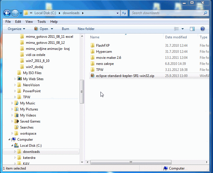 1. u folderu downloads pronaci eclipse-standard-kepler-SR1-win32(ili 64).zip.