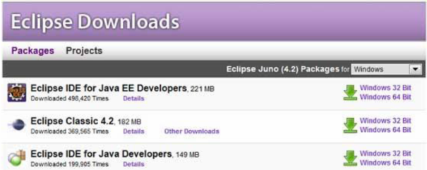 Eclipse se može downloadovati sa http://www.eclipse.org/downloads/. Download stranica izlistava nekoliko tipova eclipse.