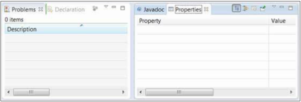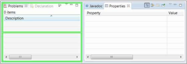 Da bismo premjestili pogled iz jednog u drugi view folder, samo kliknemo na naslov (title) pogleda i prevučemo ga u title bar prostor drugog view foldera. Zelena linija prikazana ispod je rezultat prevlačenja title bara Properties pogleda iz jednog view foldera u title bar prostor drugog view foldera. Properties pogled može biti premješten tamo gdje je zelena linija otpuštanjem dugmeta miša i slanjem drop događaja.