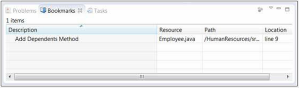 Eclipse editori dozvoljavaju da postavimo bookmark na bilo koju liniju unutar editora. Možemo koristiti bookmarke da služe kao podsjetnici i za brzu navigaciju do bilo koje linije u fajlu.