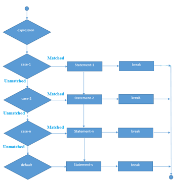 Java switch naredba je propadna. To znači da ona izvršava sve naredbe nakon prvog slaganja ako break naredba nije korištena sa switch slučajevima.