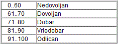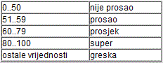 Napisati program za ispis uspjeha, prema slijedećoj tabeli: