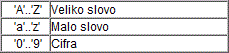 Napisati program koji odredjuje da li je zadani znak veliko ili malo slovo ili cifra, prema slijedećoj tabeli: