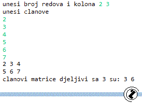109.1..Učitati dvodimenzionalni niz. Ispisati članove matrice koji su djeljive sa 3.
