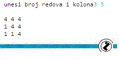 System.out.print("unesi broj redova i kolona");